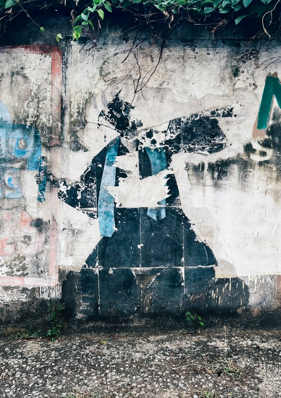 A obra é uma releitura de “Flower Thrower”, do artista Banksy.