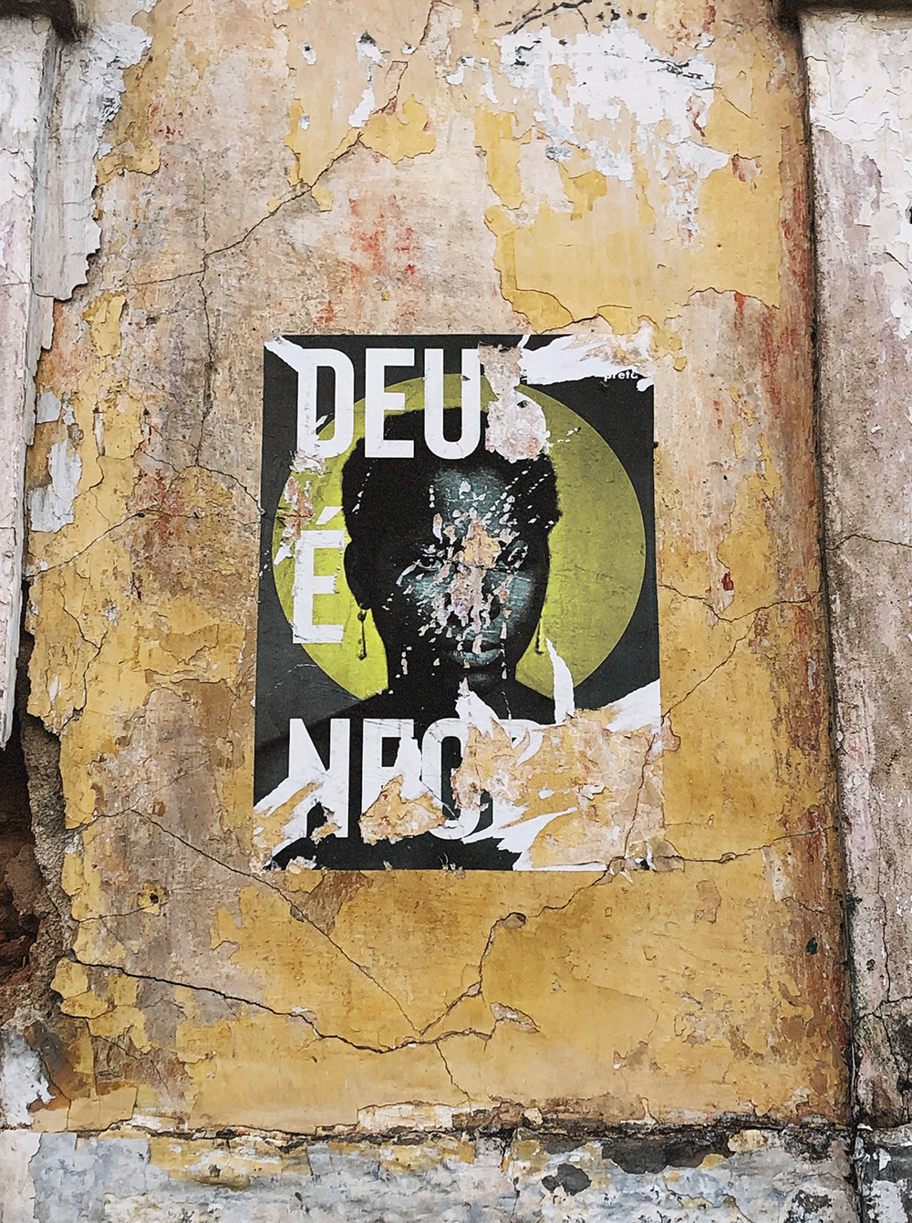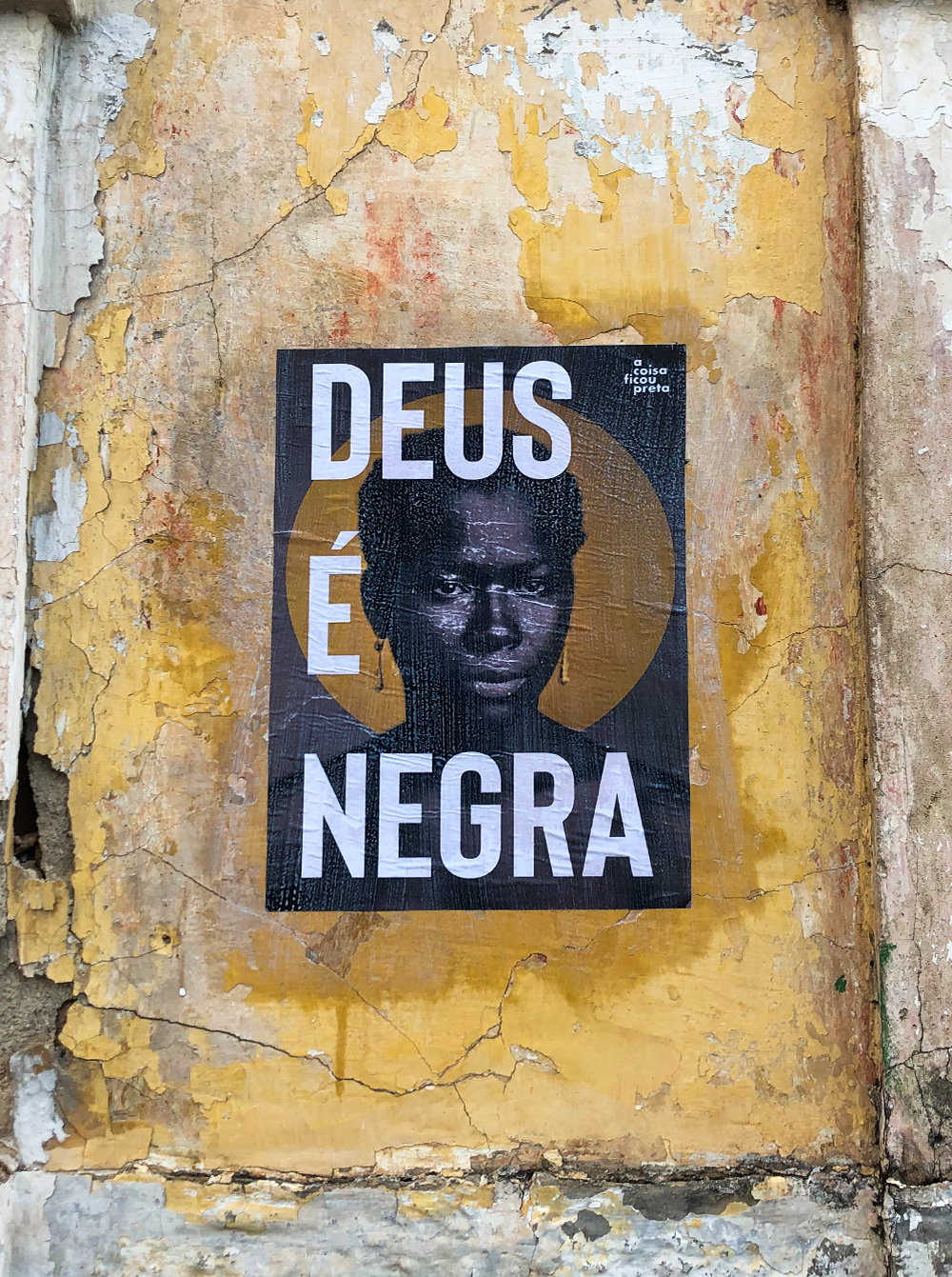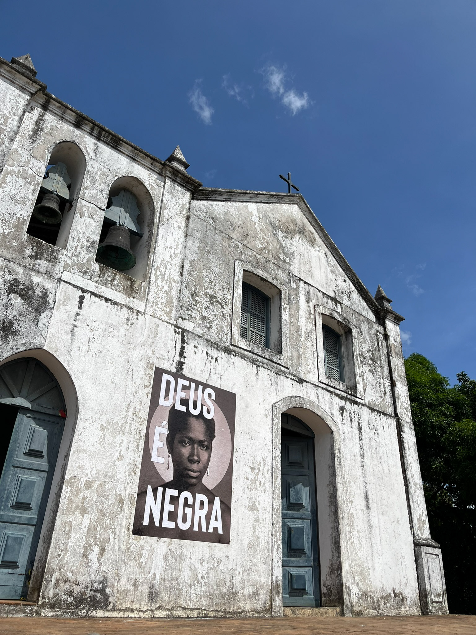 Deus é negra aplicada sobre fachada da capela São Matheus,