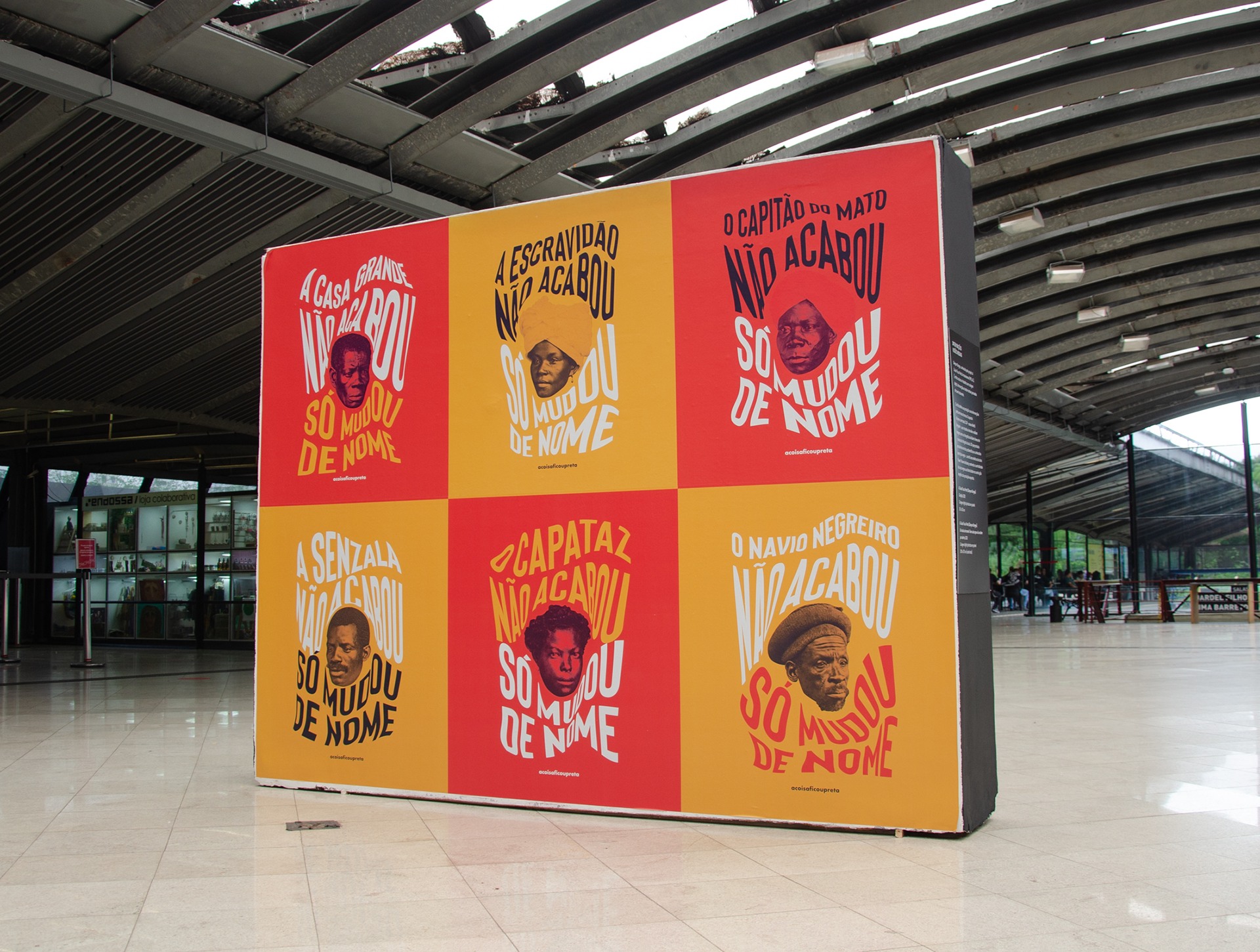 Uma série de cartazes trazendo a provocação de que a escravidão não acabou no Brasil: ela apenas se atualizou para os tempos modernos, assumiu uma nova roupagem e mudou de nome.