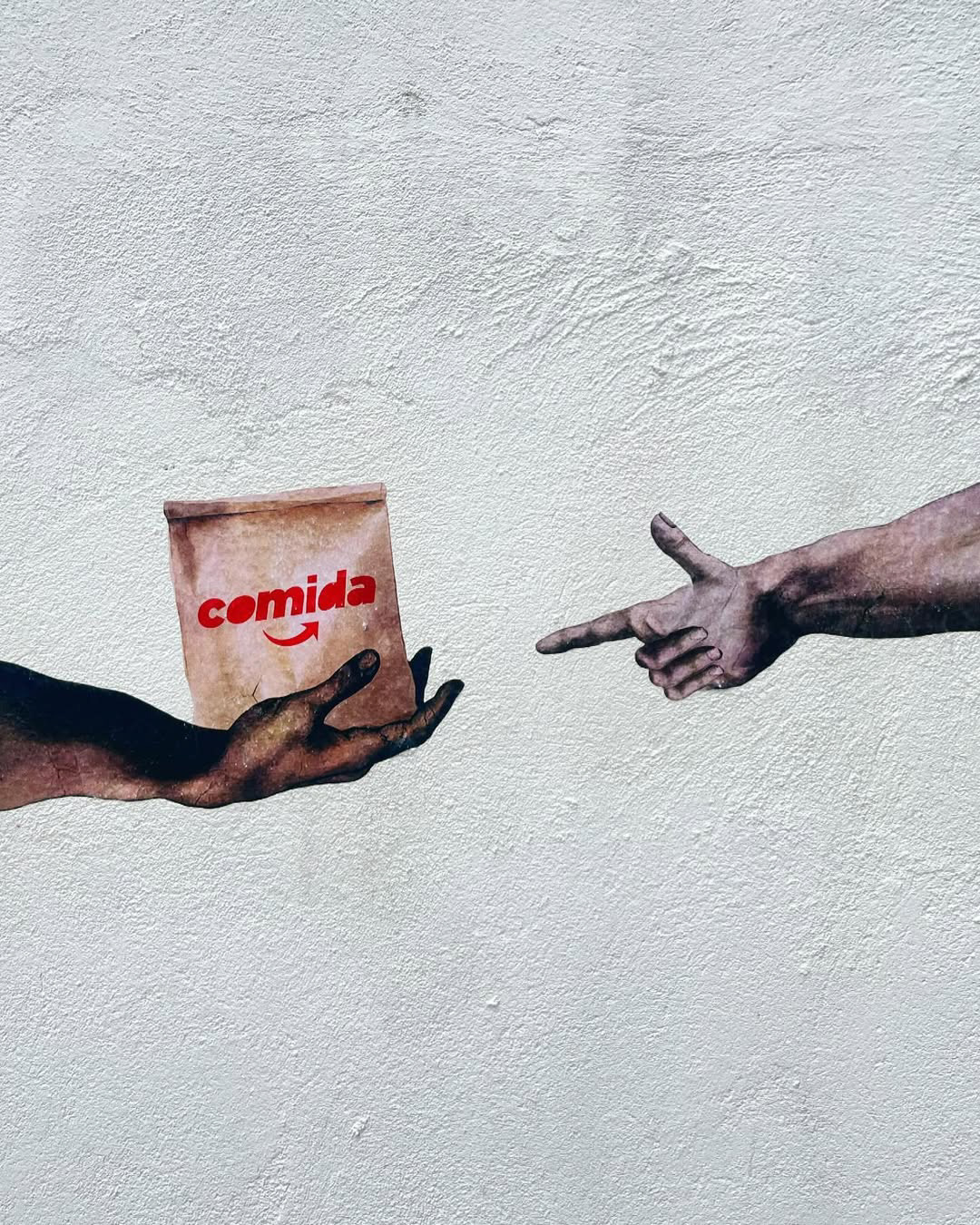 A intervenção é inspirada na “Criação de Adão”, de Michelangelo Buonarroti.